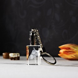 Conseils d'entretien : Votre porte clés photos peut être nettoyé comme tout en matériau en verre avec un produit adéquat ou seulement avec la microfibre fournie.