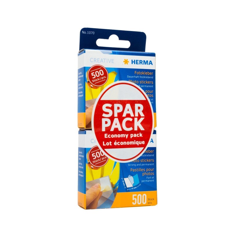 Pastilles pour photos, autocollantes sur les deux faces : une face est prête au collage, l'autre est protégée par un papier, avec une languette de décollement. Pour le collage fort et définitif de photos, notes, coupures de journaux, tickets, et bien plus encore. Adhésif sans solvant.